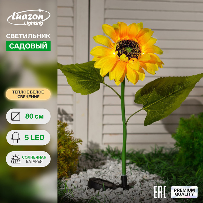 Садовый светильник на солнечной батарее «Подсолнух», 75 см, 5 LED, свечение белое