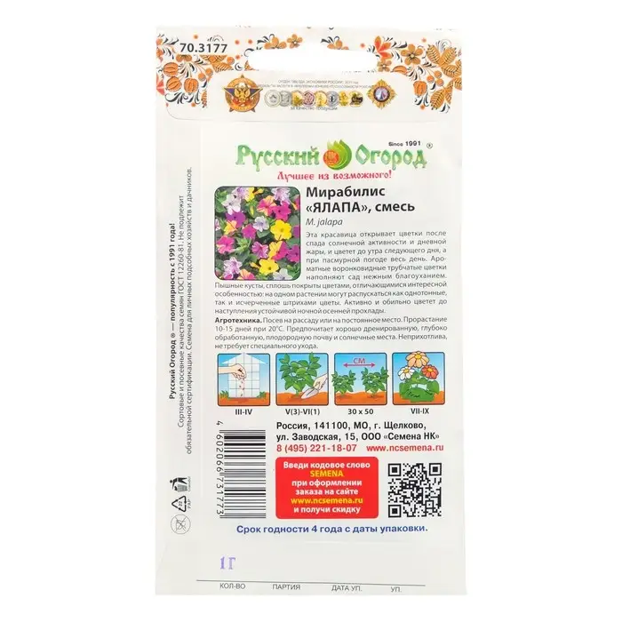 Семена цветов Мирабилис "Ночная красавица", 2,5гр.