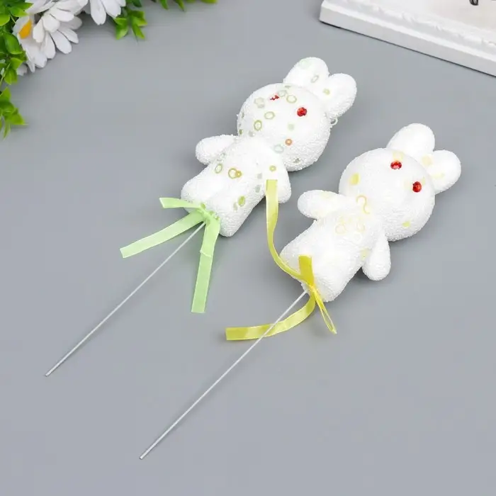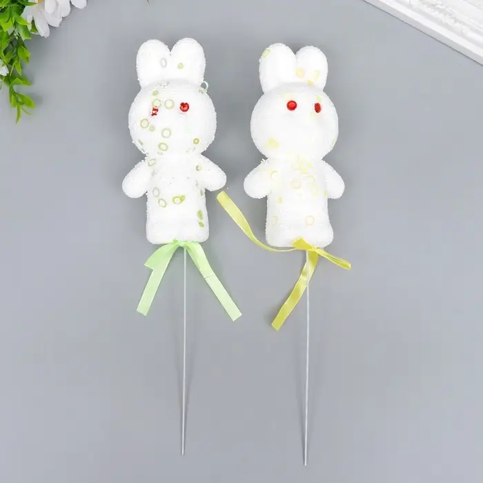 Набор топперов для украшения «Зайчата: посыпка, кружочки», 2 шт., жёлтый, зелёный, 12 см