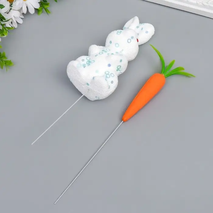 Набор топперов для украшения «Кролик в посыпке с кружочками и морковка», 2 шт. 15 см