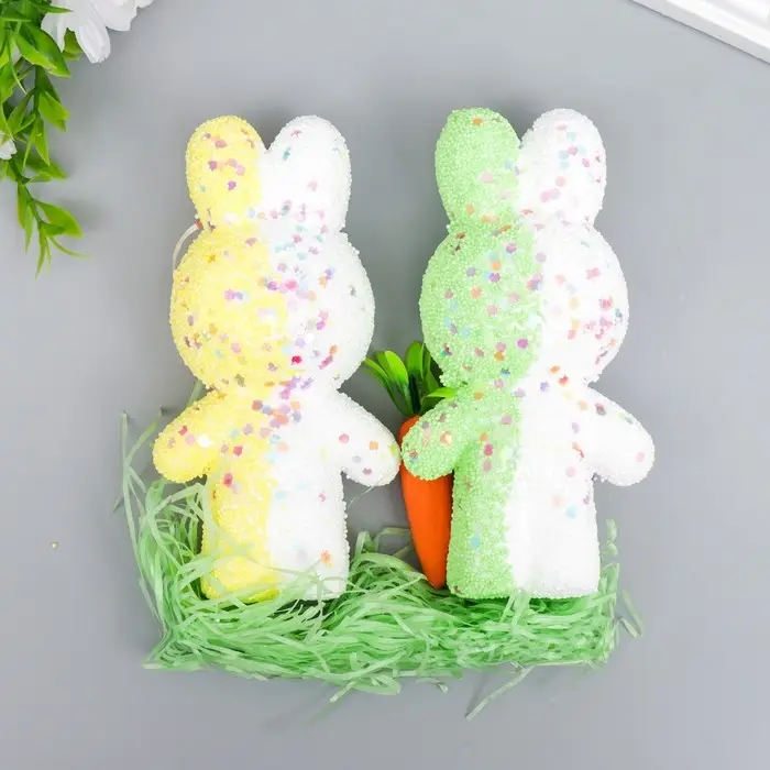 Пасхальный декор «Зайчата в посыпке с морковкой и травкой», набор: жёлтый, зелёный, 12 см, настольная фигурка