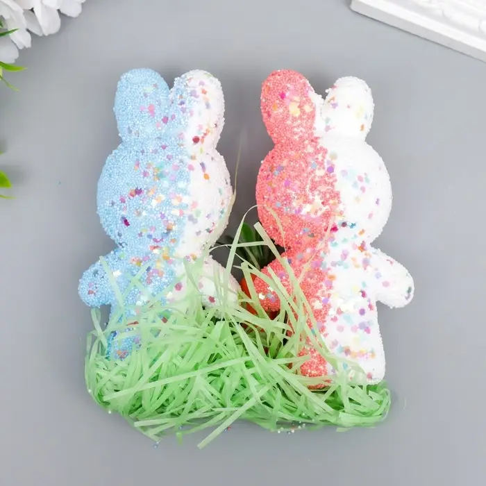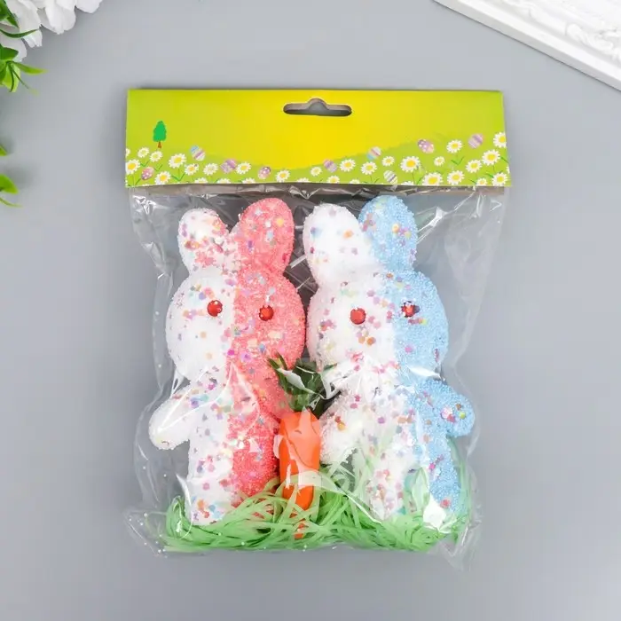 Пасхальный декор «Зайчата в посыпке с морковкой и травкой», набор: розовый, голубой, 12 см, настольная фигурка