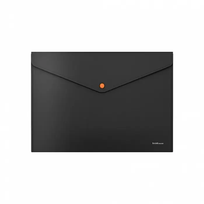 Папка-конверт на кнопке А4, 180 мкм, ErichKrause "Matt Accent", тиснение "песок", с неоновой кнопкой, непрозрачная, черная, микс