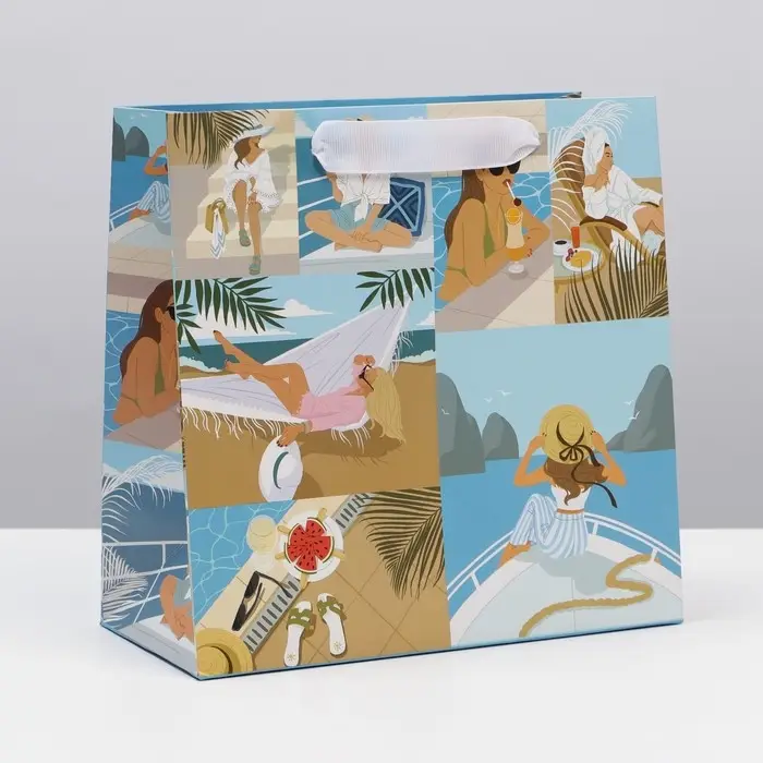 Пакет подарочный ламинированный квадратный, упаковка, «Круиз», 22 х 22 х 11 см