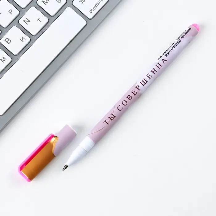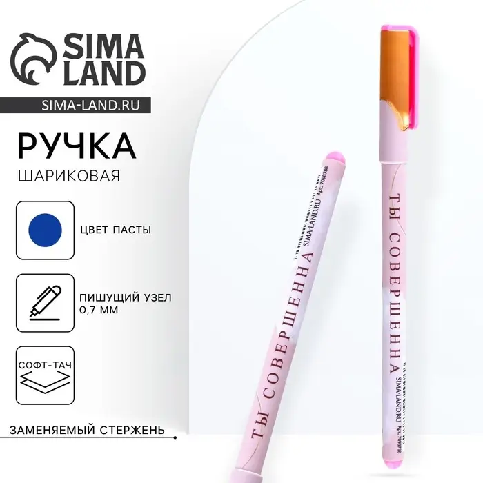 Ручка шариковая, синяя паста, 0.7 мм, с колпачком, пластик софт-тач «Ты совершенна»