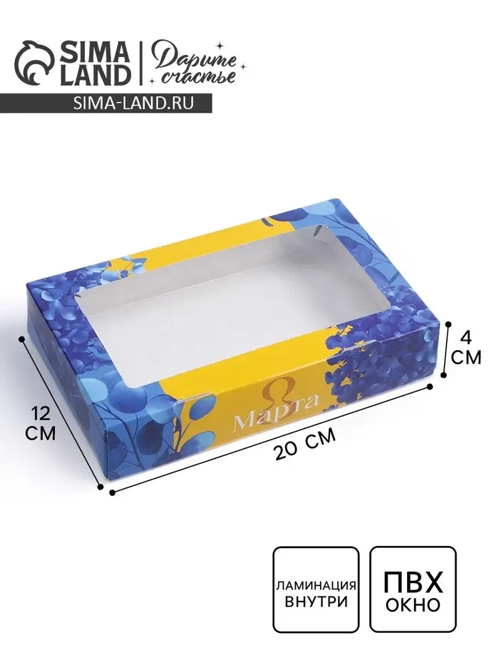 Кондитерская упаковка, коробка с ламинацией «8 марта», 20 х 12 х 4 см