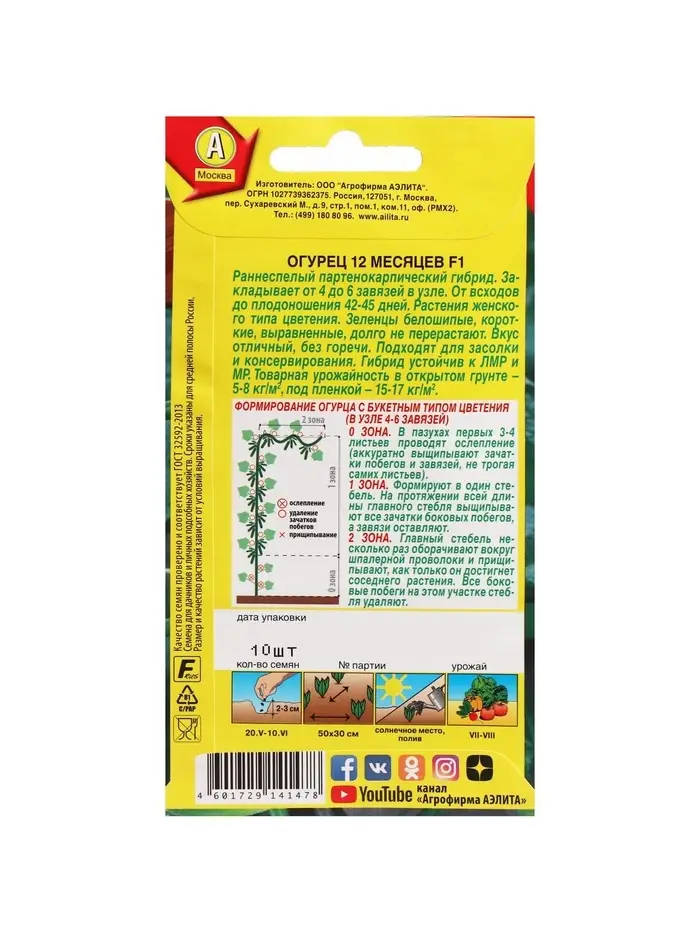 Семена огурца "12 месяцев", F1, 10 шт.