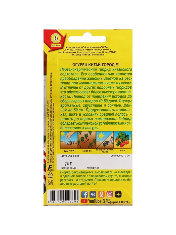 Семена Огурец "Китай-город", F1, ц/п, 7 шт