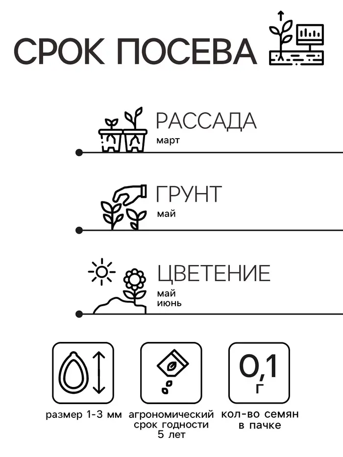 При подзимнем, ранневесеннем и рассадном способе посева растения зацветают в первый год. Посев на рассаду проводят предварительно стратифицированными семенами. В фазе одного-двух настоящих листьев сеянцы пикируют. Рассаду высаживают на постоянное место, не дожидаясь сроков окончания возвратных холодов.