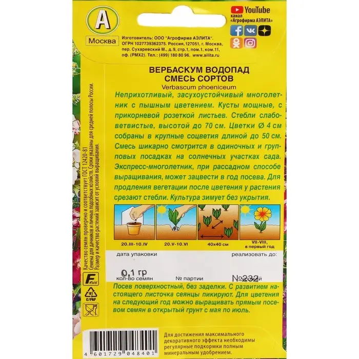 Семена цветов Вербаскум "Водопад", 0,1 г