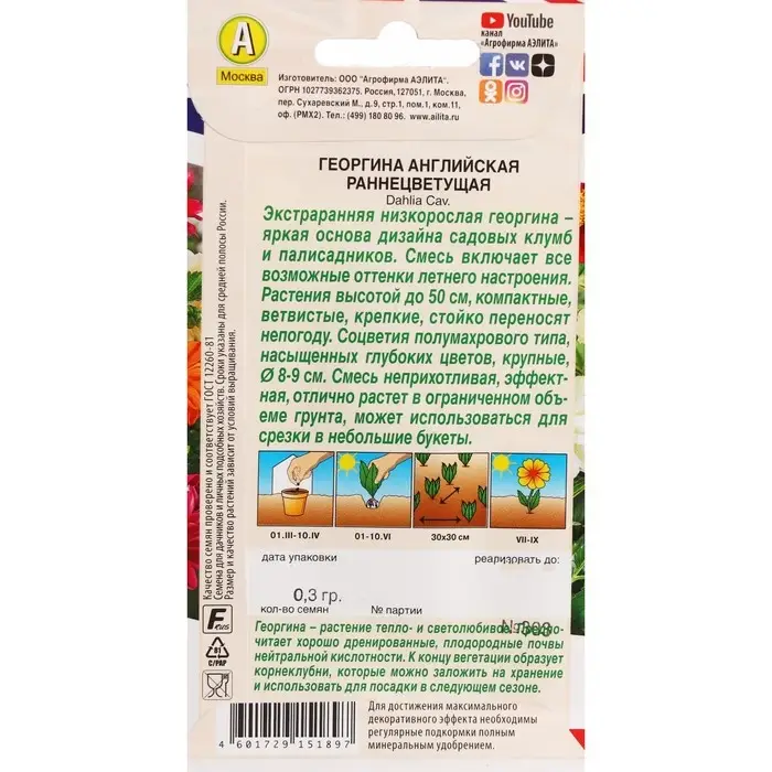 Семена цветов Цв Георгина Смесь "Фигаро",0,1 г