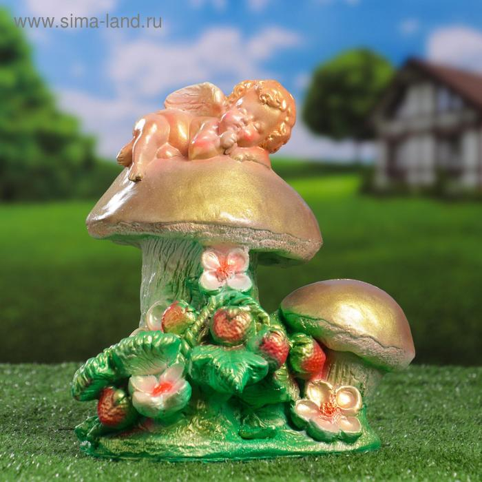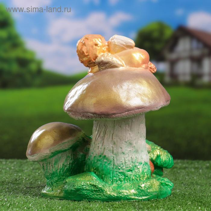 Садовая фигура "Ангелочек на грибе" 17х20х24см