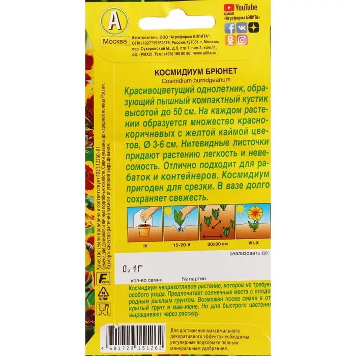 Семена Цветов Космидиум "Брюнет", ц/п, 0,1 г