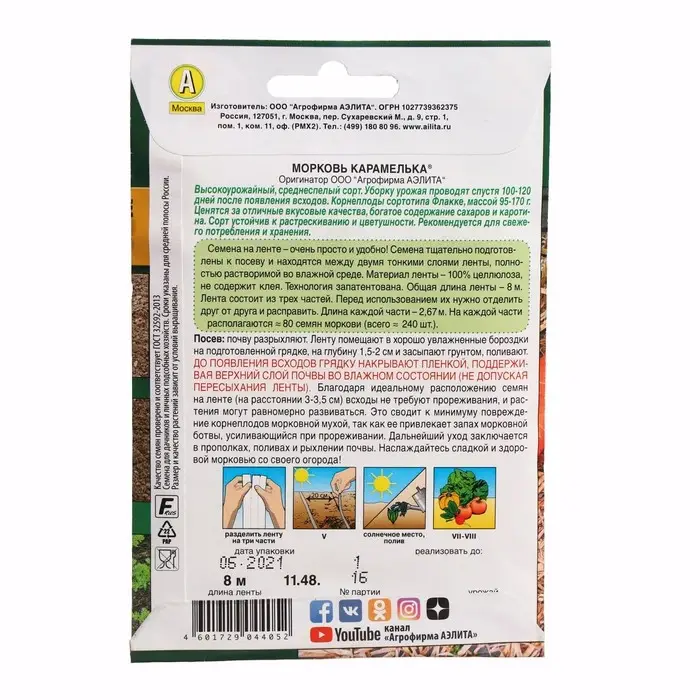 Семена Морковь "Карамелька", 8м Лента