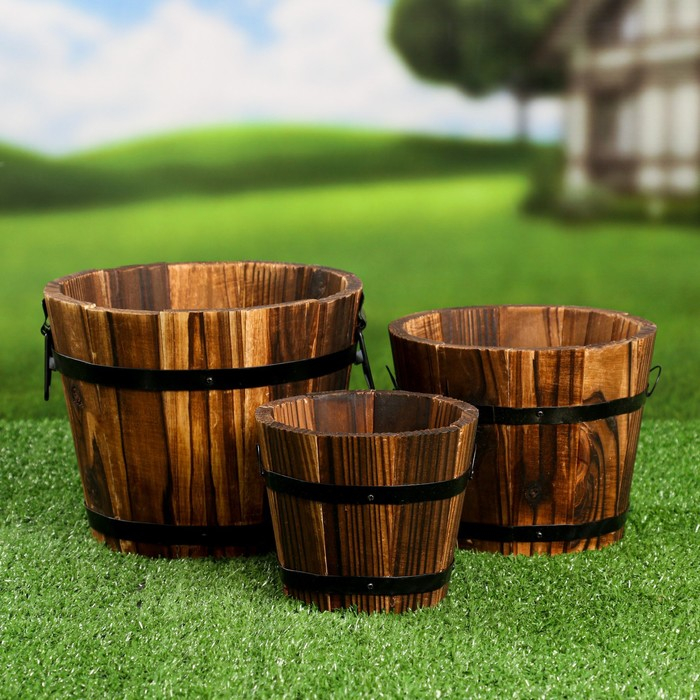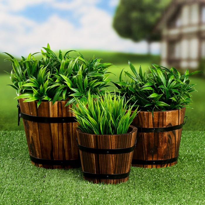 Набор деревянных кашпо, круглых 18х16х12см