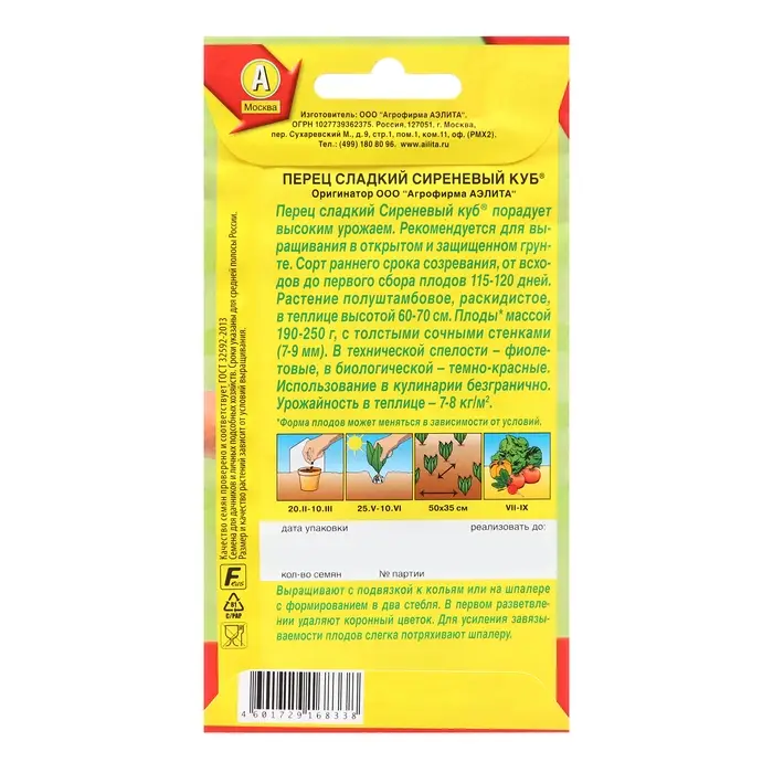 Семена Перец сладкий "Сиреневый куб", ц/п, 0,2 г