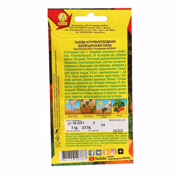 Семена Тыква крупноплодная "Богатырская сила", ц/п, 1 г