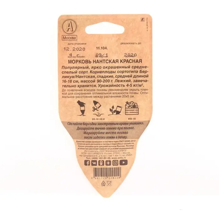 Семена Морковь "Нантская красная", сеялка, 4 г