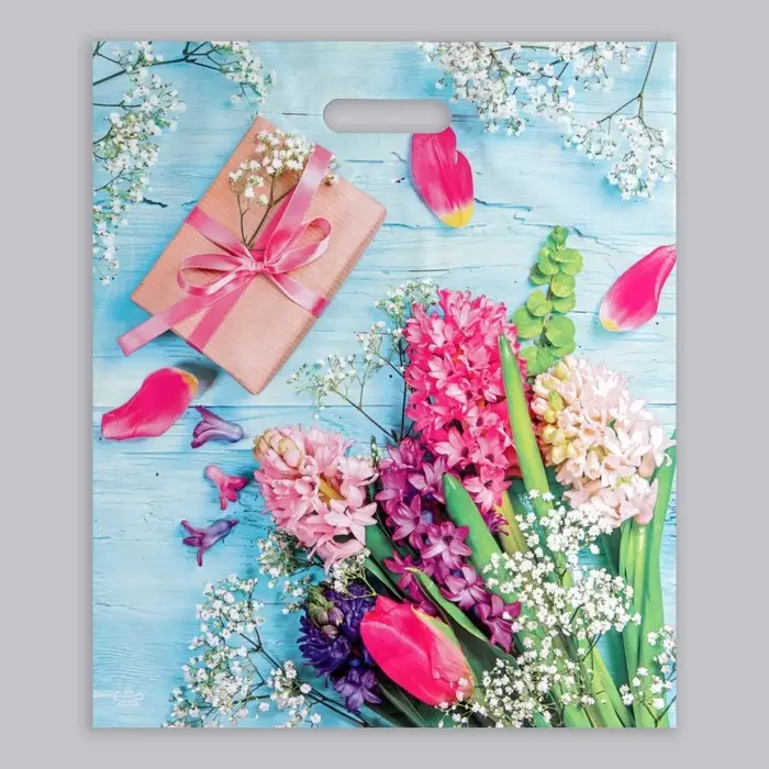 Пакет «Яркие гиацинты», полиэтиленовый, с вырубной ручкой, 38×45 см, 60 мкм