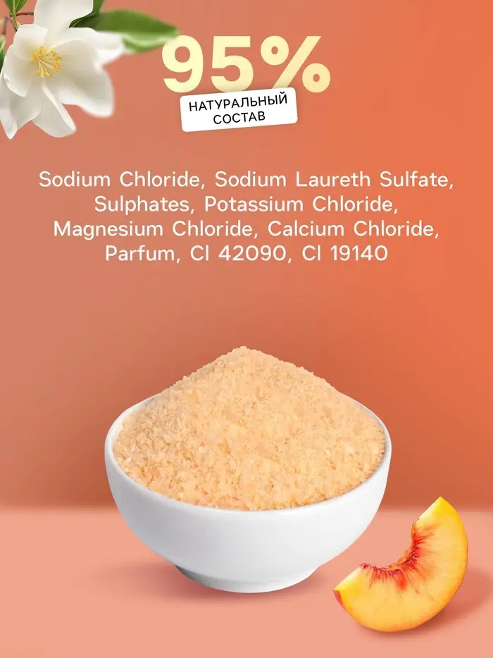 Нежная пена мягко обволакивает кожу, помогая расслабиться после долгого дня, а активные компоненты соли способствуют её смягчению и увлажнению.