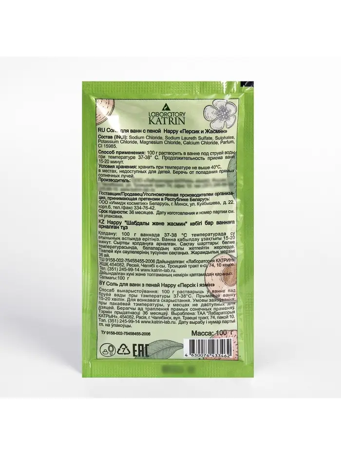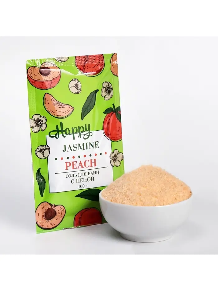 Соль для ванн с пеной Happy персик и жасмин, 100 г