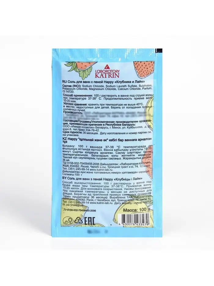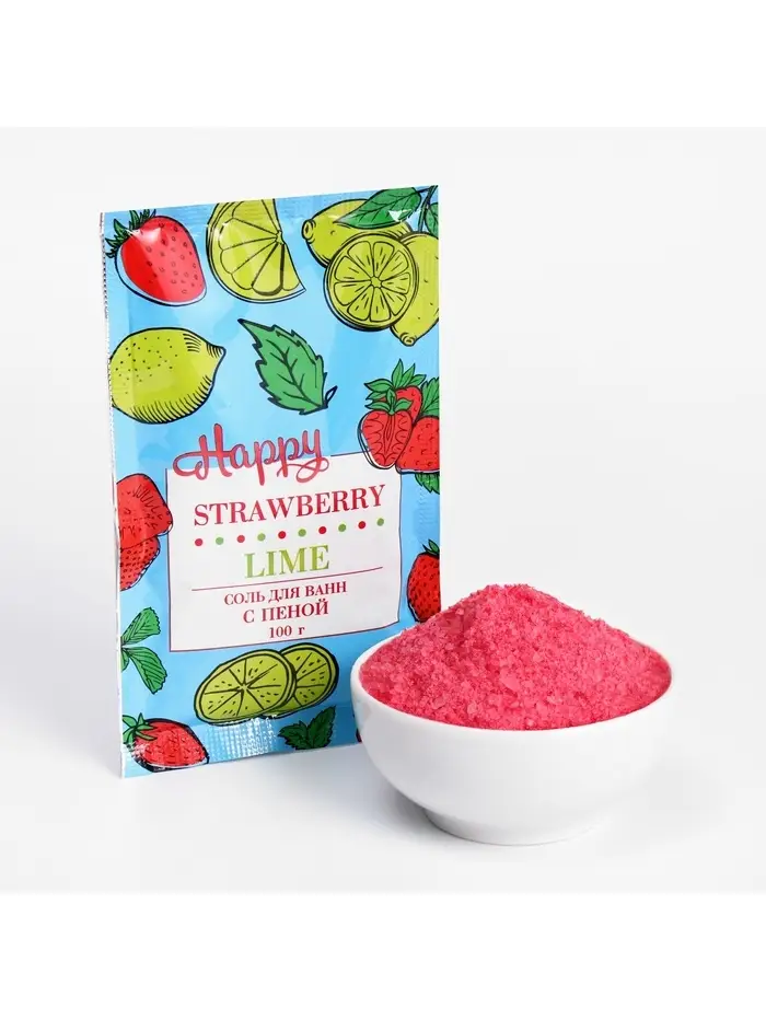 Соль для ванн с пеной Happy клубника и лайм, 100 г