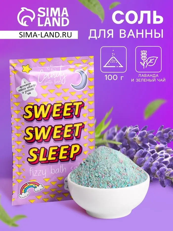 Соль для ванн шипучая с ароматом нежной лаванды и зеленого чая "Sweet Sweet Sleep" — это ваш идеальный помощник для глубокого расслабления перед сном. Если крепкий и спокойный сон давно не был вашим спутником, создайте уютную атмосферу для вечернего отдыха с этим средством.