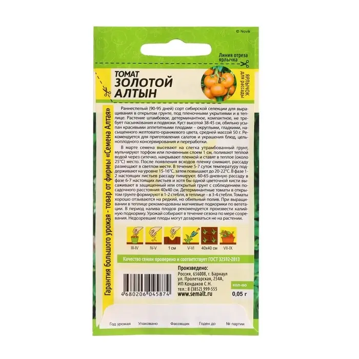 Семена Томат "Золотой Алтын", Сем. Алт, ц/п,детерминантный 0,05 г