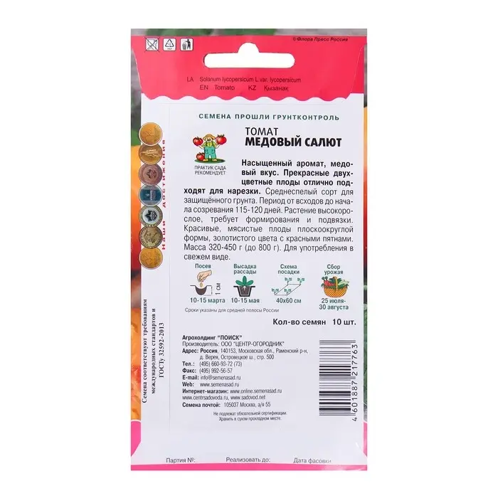 Семена Томат "Медовый салют",индетерминантный,высокорослый, 10 шт.