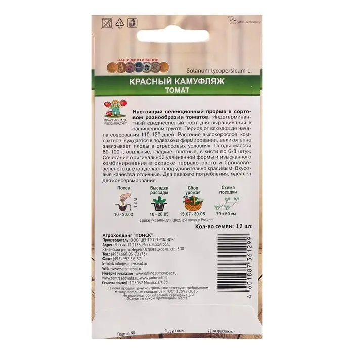 Семена Томат "Красный Камуфляж", индетерминантный,высокорослый,12 шт.