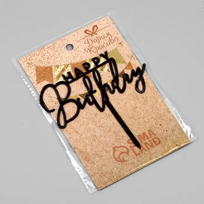 Топпер для торта «День рождения», черный глянец