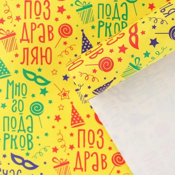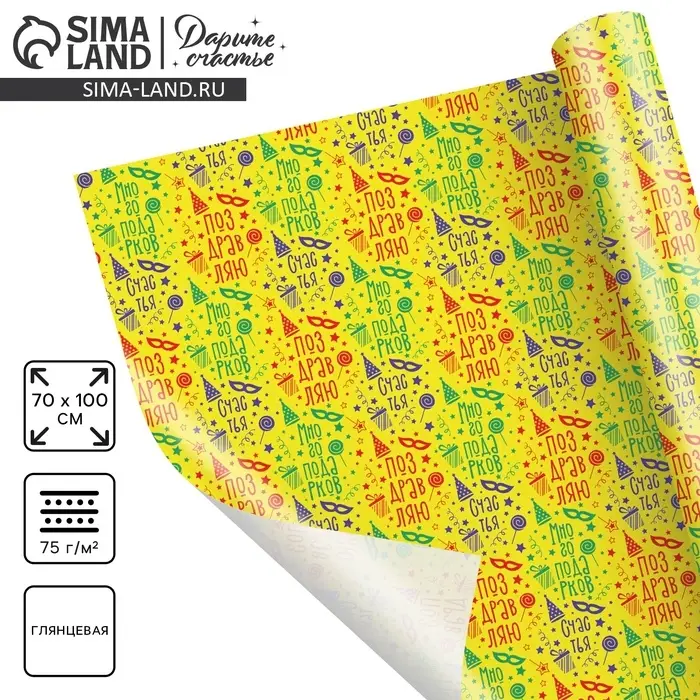 Бумага упаковочная глянцевая «Много подарков», 70 х 100 см
