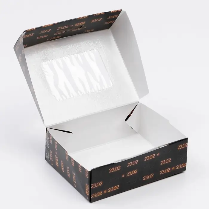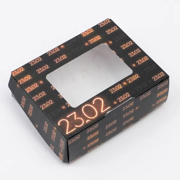 Кондитерская упаковка, коробка с ламинацией «23 февраля», 10 х 8 х 3.5 см
