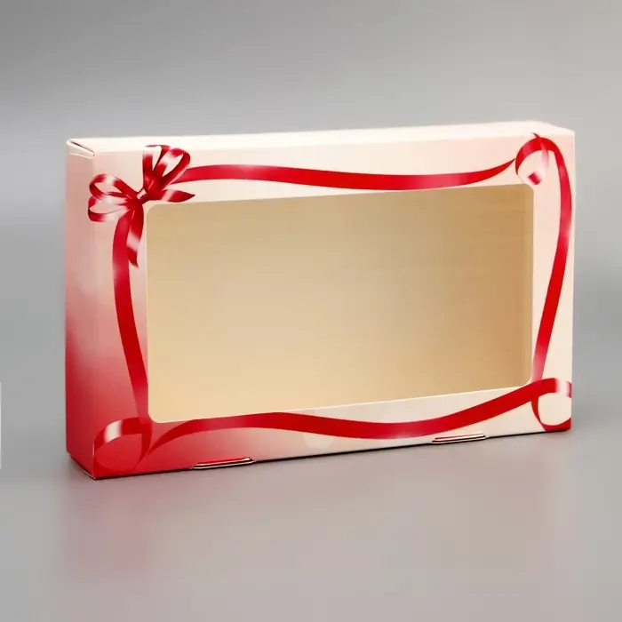 Коробка складная изготовлена из плотного картона. Прекрасно подойдет для десертов, можно использовать для праздничного декора.