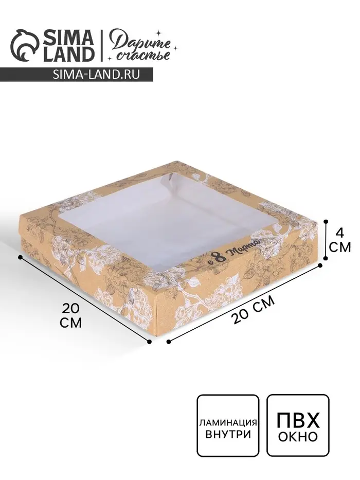 Кондитерская упаковка, коробка с ламинацией «8 марта», 20 х 20 х 4 см