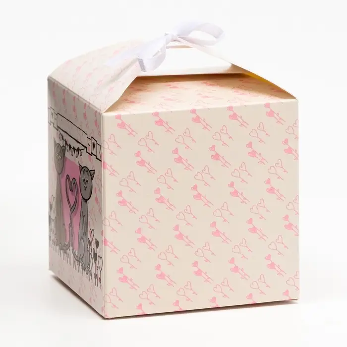 Коробка складная изготовлена из плотного картона. Прекрасно подойдет для десертов, можно использовать для праздничного декора.