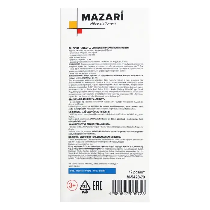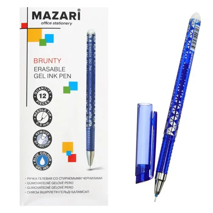 Ручка гелевая со стираемыми чернилами Mazari Brunty, пишущий узел 0.5 мм, сменный стержень, чернила синие