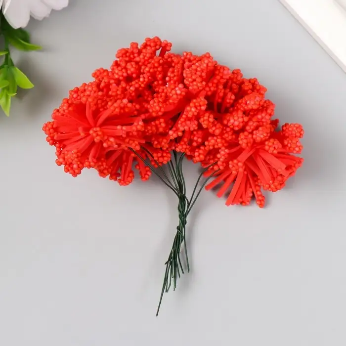 Цветы для декорирования "Облако" красный 1 букет=12 цветов 8 см