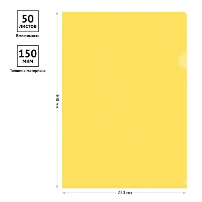 Папка-уголок А4, 150 мкм, Calligrata, прозрачная, жёлтая