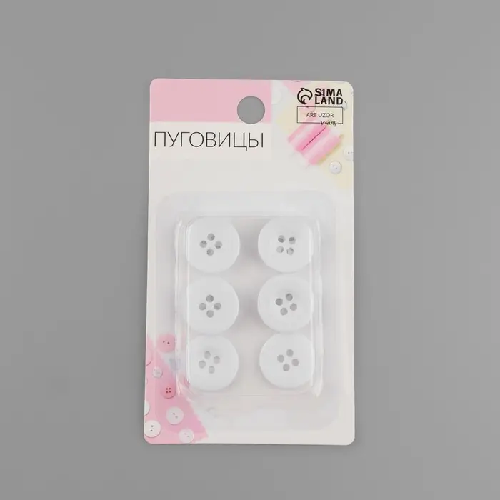Пуговицы, 4 прокола, d=18 мм, набор 10 шт., белые