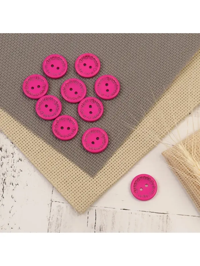 Набор нашивок из дерева Hand made with love, 2×2 см, 10 шт., ярко-розовый