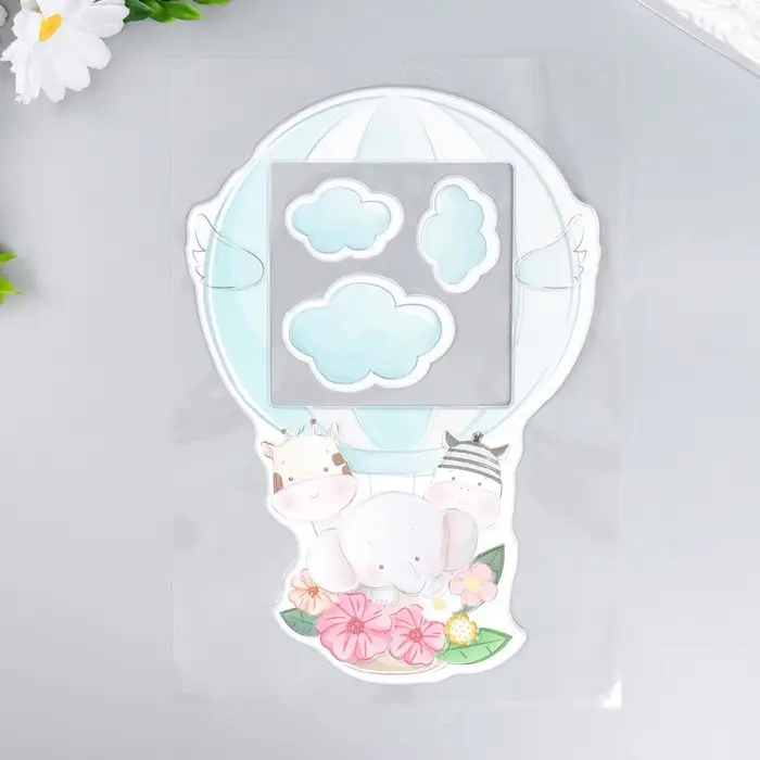 Наклейка на выключатель "Зверята на воздушном шаре" окно 8,5х8,5 см, объемная 26х16,5 см
