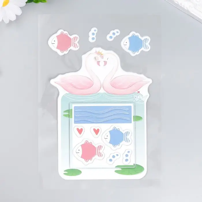 Наклейка на выключатель "Лебеди в пруду с рыбками" окно 8,5х8,5 см, объемная 26х16,5 см