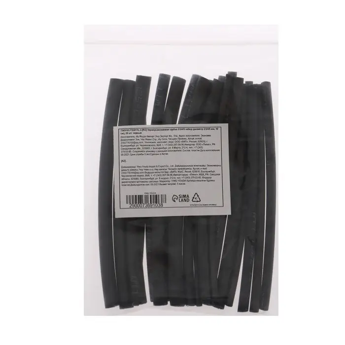 Термоусаживаемая трубка 2/3/4/5 набор (диаметр 2/3/4/5 мм, 10 см), 20 шт, черный