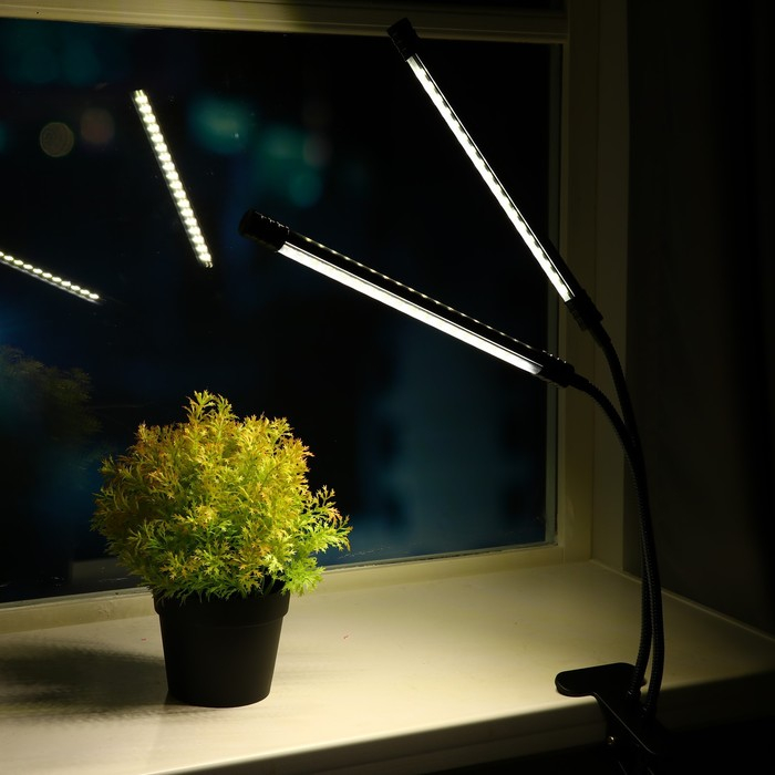 Фитосветильник светодиодный, 18 Вт, 250 мм, IP66, 5 В, USB, полноспектр., прищепка, таймер