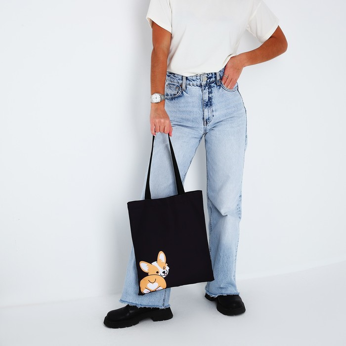 Сумка-шопер «Корги», без молнии, без подкладки, цвет чёрный