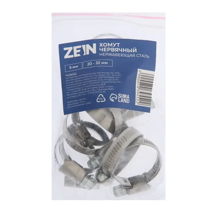 Хомут червячный ZEIN engr, диаметр 20-32 мм, ширина 9 мм, нержавеющая сталь