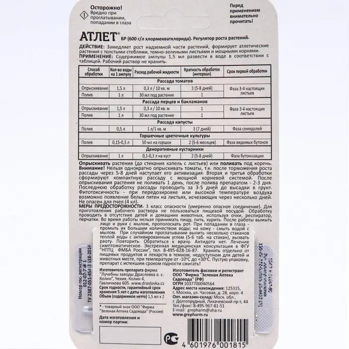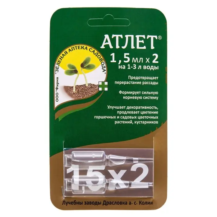 Атлет - незаменимый помощник при выращивании рассады. Препарат сдерживает рост в высоту надземной части растения, при этом способоствует утолщению стебля и значительному росту корней.