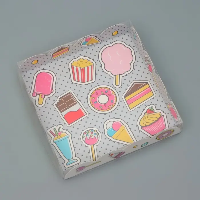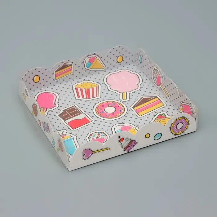 Коробка для печенья, кондитерская упаковка с PVC крышкой, «Сладости в подарок», 21 х 21 х 3 см