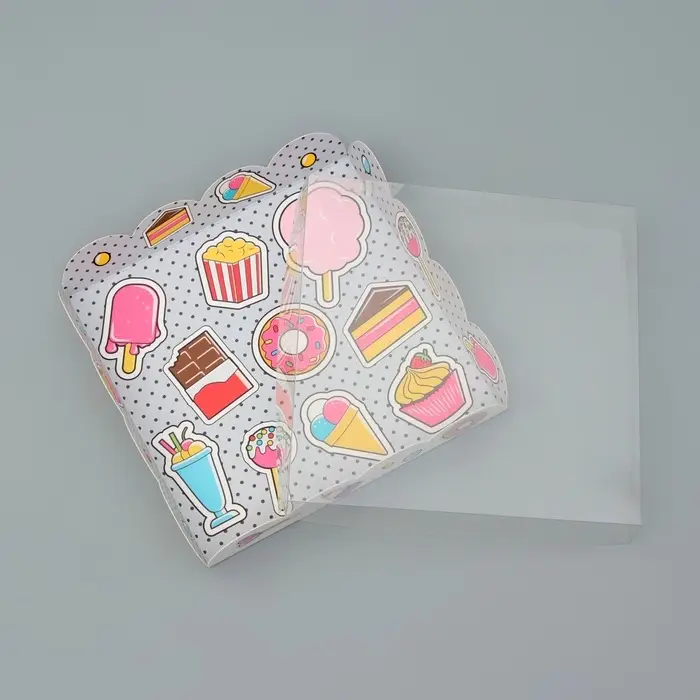 Представляем вашему вниманию стильную и практичную коробку для печенья с прозрачной ПВХ-крышкой – идеальное решение для упаковки различных товаров, включая подарочные наборы, десерты и аксессуары.